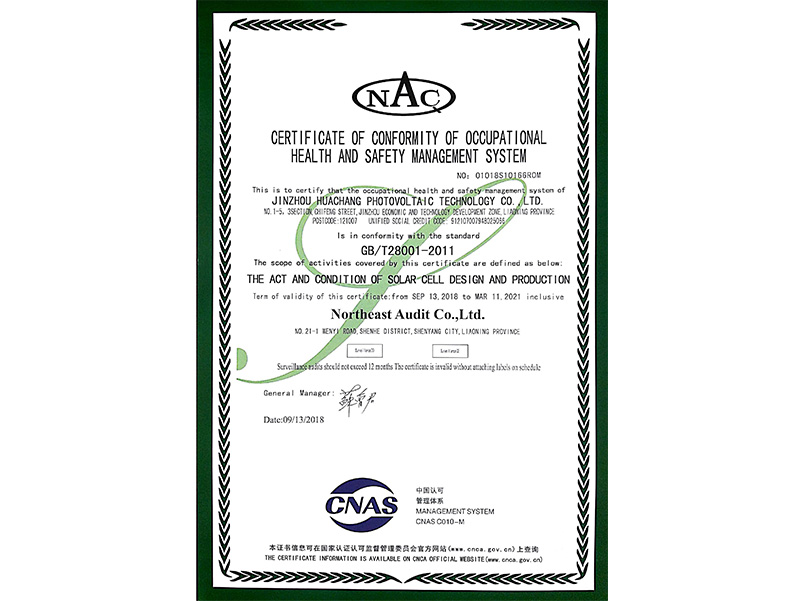 職業(yè)健康安全管理體系認(rèn)証証明書(shū)(英語(yǔ))