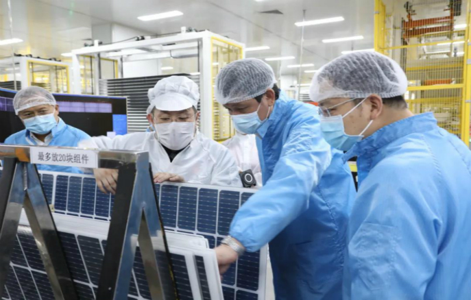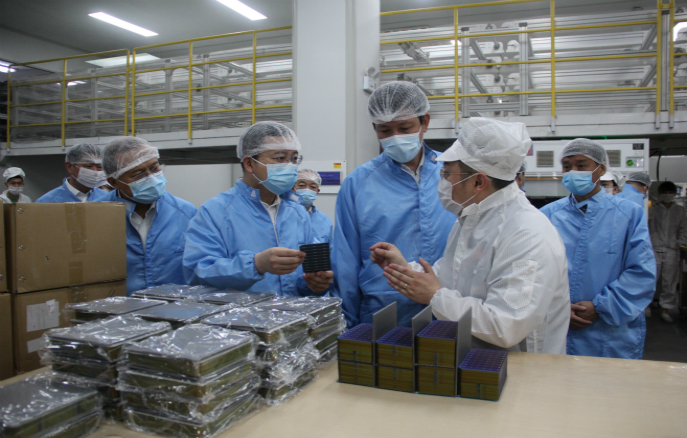 上午10時30分,市領導來到我錦州陽光能源有限公司全資子公司錦州創(chuàng)惠新能源有限公司,走進生產(chǎn)車間現(xiàn)場了解企業(yè)年產(chǎn)1GW高效太陽能組件數(shù)字化車間項目相關情況。我公司總經(jīng)理張海陪同市領導一行,張總介紹:該項目達產(chǎn)后,可實現(xiàn)15億元的銷售收入,并作為東北地區(qū)領先智能工廠帶動同行業(yè),完成再生能源布局優(yōu)化和提質(zhì)增效,加快推動企業(yè)向清潔低碳模式轉(zhuǎn)變。