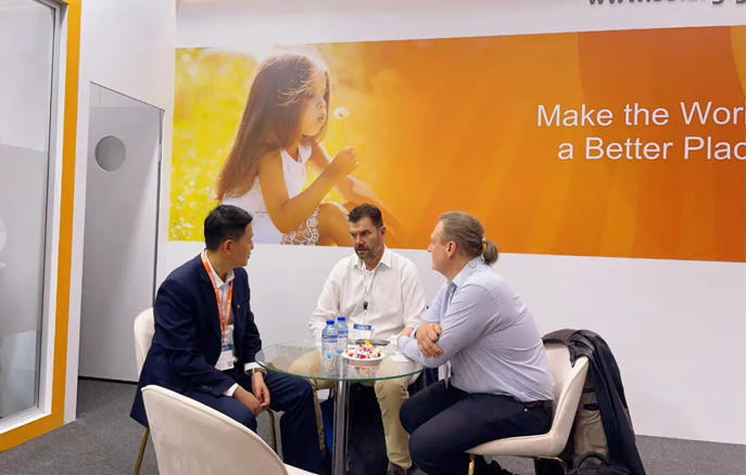 本屆德國展,陽光能源展出了我司的“明星產(chǎn)品”——GIGA系列組件,其卓越的性能和高效的轉(zhuǎn)換效率,深受客戶好評?,F(xiàn)場,陽光能源工作人員還與來自世界各地的業(yè)內(nèi)人士展開了深度交流與業(yè)務洽談。