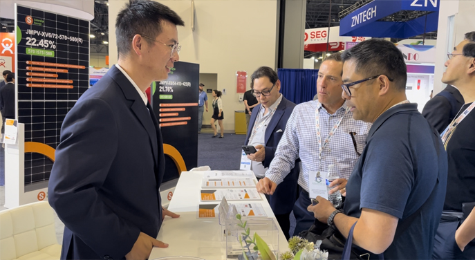 本屆美國展,陽光能源帶來的3款Giga系列組件產(chǎn)品,涵蓋72片雙玻、78片雙玻和54片單玻全黑組件,均采用182mm電池片設(shè)計。其中,我司展出的Giga-N系列72片雙玻組件吸引了不少現(xiàn)場觀眾的駐足了解。該款組件采用了行業(yè)領(lǐng)先的N型TOPCon電池技術(shù),最高量產(chǎn)轉(zhuǎn)換效率達22.45%,兼具高發(fā)電量、高雙面率、低溫度系數(shù)、低光衰率等多重優(yōu)勢,首年功率衰減≤1%,能夠有效保障終端用戶收益。同時,本次展出的3款Giga系列產(chǎn)品具備優(yōu)異的抗PID性能,且通過5-10倍IEC標準檢測,對于極限環(huán)境的耐受力更強,能夠滿足北美市場大型地面電站、高端戶用等全場景需求。
