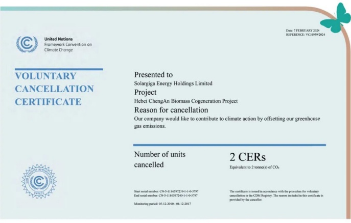 于報(bào)告期內(nèi),陽光能源成功實(shí)施了多項(xiàng)減碳措施,包括利用碳抵消來實(shí)現(xiàn)溫室氣體排放強(qiáng)度的降低。我們利用的碳抵消專案是聯(lián)合國清潔發(fā)展機(jī)制(CDM)的河北成安生物質(zhì)熱電聯(lián)產(chǎn)專案(專案編號(hào):3797)。該專案產(chǎn)生的電力出售給河北省電網(wǎng),以替代燃煤發(fā)電廠的產(chǎn)能。此項(xiàng)目不僅減少了溫室氣體排放,還促進(jìn)了資源效率、環(huán)境保護(hù)和對(duì)當(dāng)?shù)厣鐓^(qū)的社會(huì)經(jīng)濟(jì)效益。通過此項(xiàng)目獲得的核證減排量(CERs)對(duì)于實(shí)現(xiàn)2022年在杭州舉行的第19屆亞洲運(yùn)動(dòng)會(huì)和第4屆亞洲殘疾人運(yùn)動(dòng)會(huì)的碳中和起到了關(guān)鍵作用。