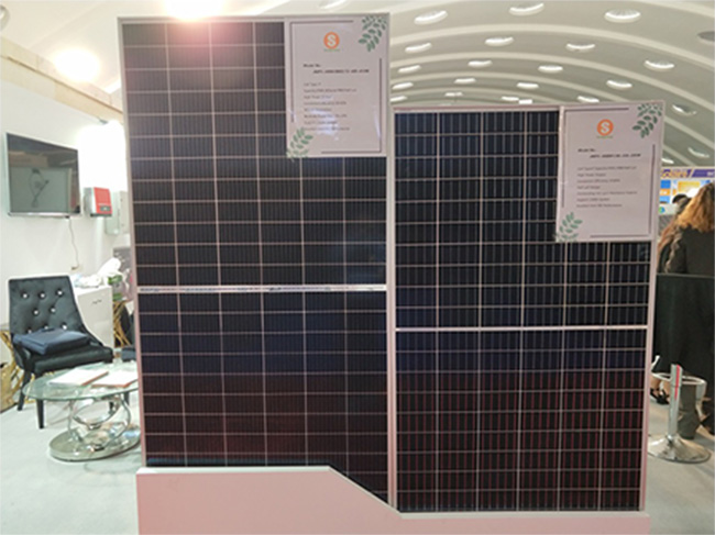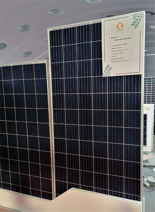 此次展會,陽光能源品牌展出三款組件,分別為單晶雙玻半片9BB-410W組件、單晶常規(guī)半片5BB-330W組件、多晶72片330W組件和多晶60片275W組件,其中,多晶275W和330W組件由於性價比高,在當?shù)厮孟到y(tǒng)和農(nóng)業(yè)專案中應(yīng)用廣泛,引起熱銷浪潮。另外,單晶雙玻半片9BB-410W組件也受到很多訪客的關(guān)注和諮詢。