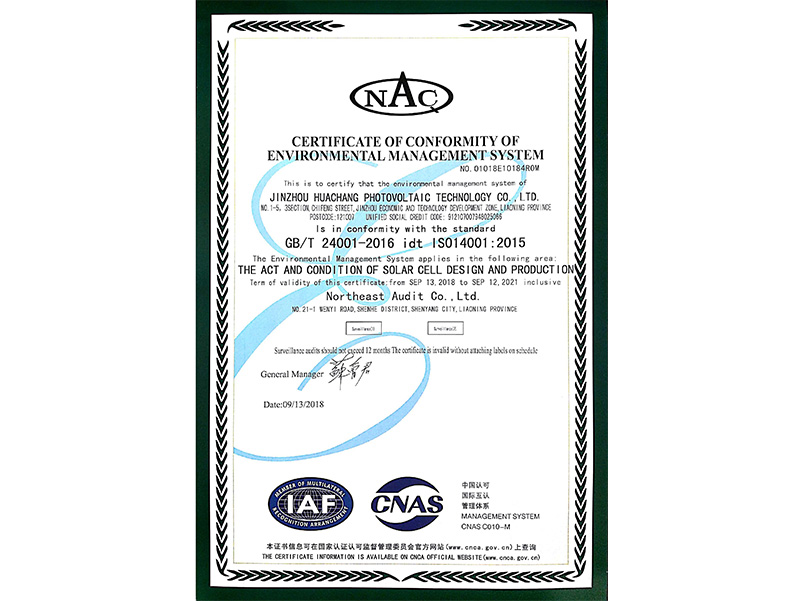 環(huán)境管理體系認(rèn)證證書(英文)